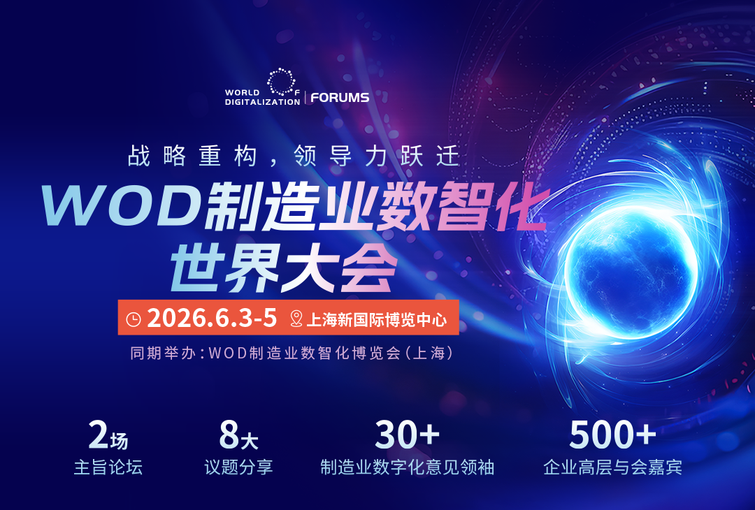 展会同期举办的“WOD制造业数智化世界大会”以 “战略重构,领导力跃迁” 为核心锚点,大会将通过前沿趋势研判、标杆案例拆解、战略资源链接等专业化内容与服务,助力制造企业完成数智化转型的战略框架重构,实现从 “被动适配技术” 向 “主动引领数智化生态” 的领导力层级跃迁。